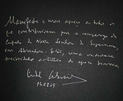 O Som da Gente visitou, no último programa, a Capela de Nossa Senhora da Esperança como o têm feito milhares de portugueses , à semelhança do Prof. Cavaco e Silva que, no ano passado, deixou registado no livro de honra da capela a sua mendagem que aqui reproduzimos.