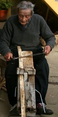 Acompanhámos o amigo Silva, em plena actividade, quando lavrava a madeira de castanho no seu banco de cesteiro.
