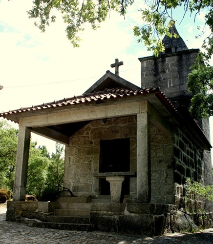 No exterior e nas costas do altar mor, encontra-se a pedra dos funerais que servia de mesa para servir o pão aos forasteiros que aqui se dirigiam para acompanhar os familiares ou amigos até à última morada.